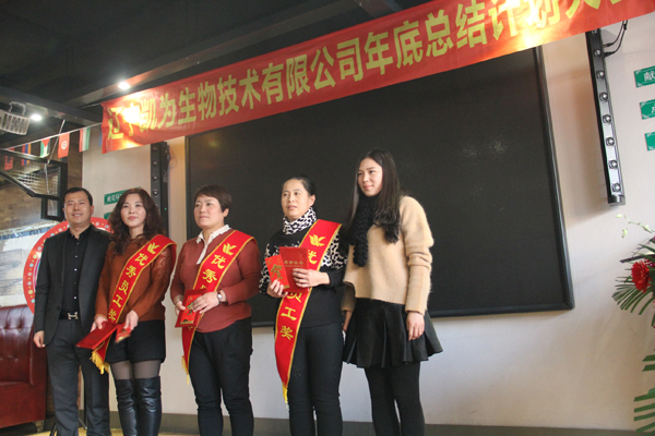 隨后,大會(huì)進(jìn)行了“生產(chǎn)部?jī)?yōu)秀員工”,“六年貢獻(xiàn)獎(jiǎng)”,“十年貢獻(xiàn)獎(jiǎng)”的表彰活動(dòng)。總經(jīng)理王鐵良、銷售部總經(jīng)理趙福寬、集團(tuán)事業(yè)部經(jīng)理景立坤、生產(chǎn)部經(jīng)理肖營(yíng)營(yíng),分別為獲獎(jiǎng)員工頒發(fā)了榮譽(yù)證書、獎(jiǎng)金或獎(jiǎng)品,鼓勵(lì)他們?cè)谛碌囊荒昀锢^續(xù)努力工作,再創(chuàng)佳績(jī)。